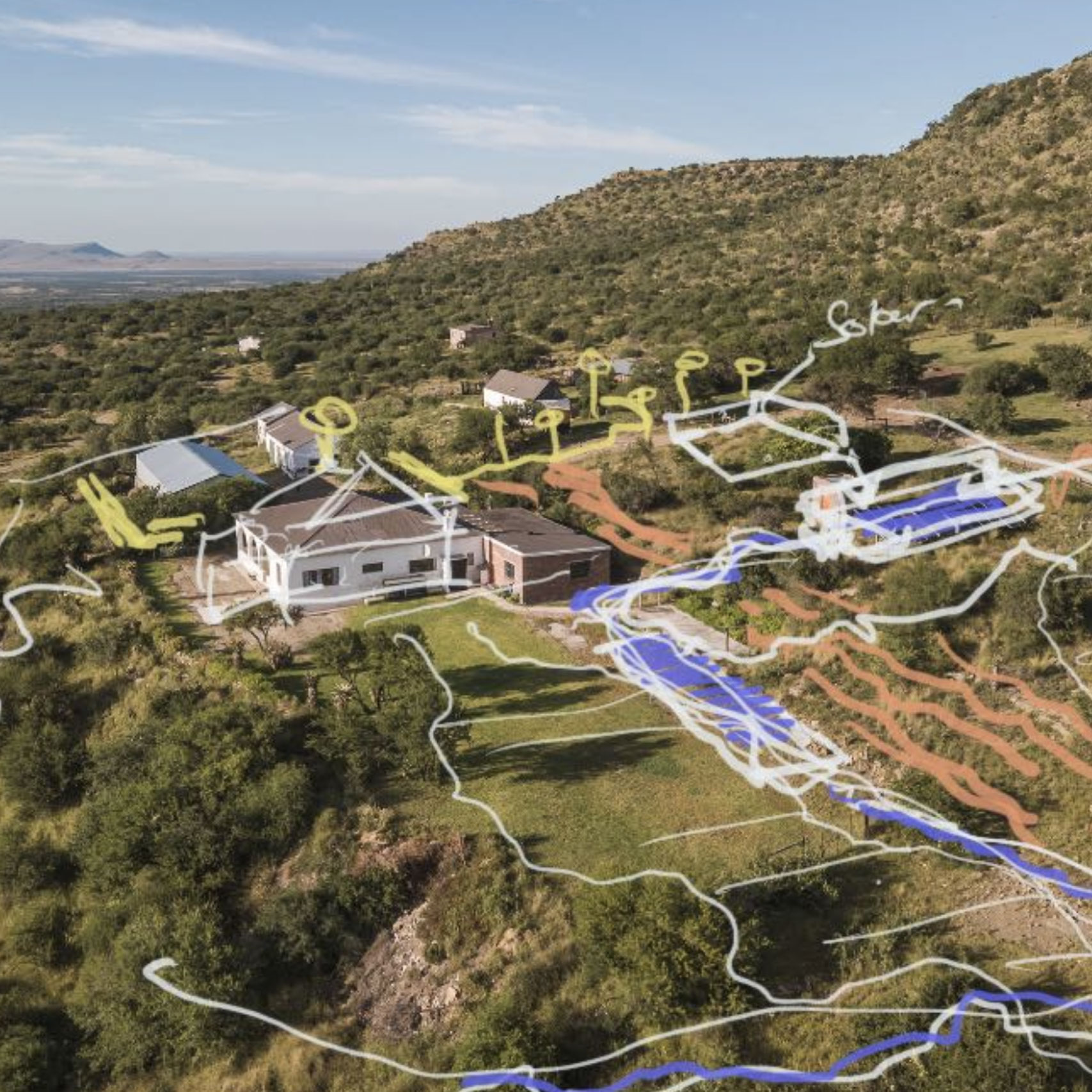 We are working closely with architects and Karoo veld rehabilitation specialists, Renu-Karoo, to create a truly unique Karoo garden on this magical farm which overlooks Camdeboo National Park. The central concept is a gravity-fed water system originating from a mountain spring, with the water piped to the garden’s edge, cascading down exposed bedrock and then meandering gently through the werf before returning to the stream.